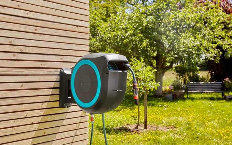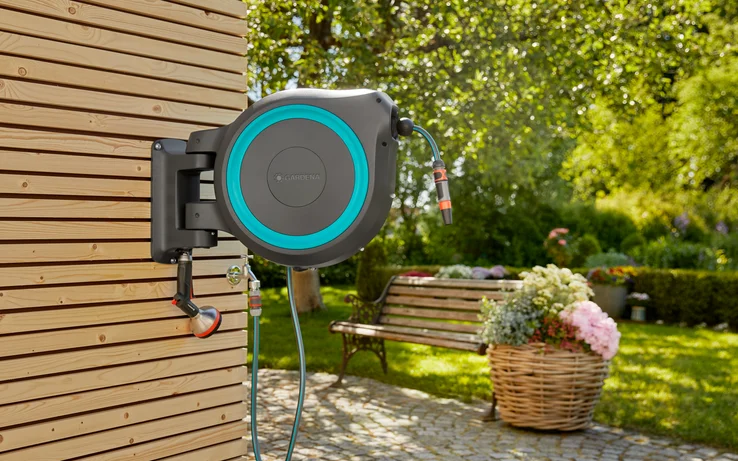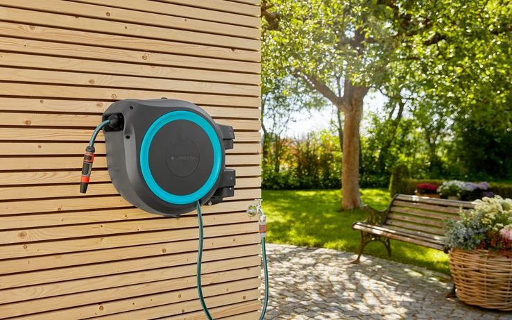 Díky nástěnnému boxu na hadici budete mít zahradní hadici vždy po ruce. Postřikovače, sprchy a mycí kartáče lze snadno zavěsit a uskladnit na nástěnném držáku.