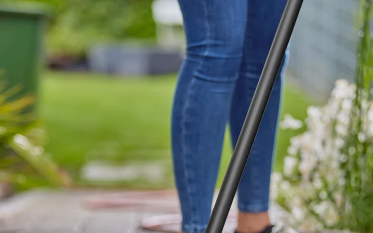 Pro venkovní čištění se kartáč jednoduše připevní k vodní hadici.