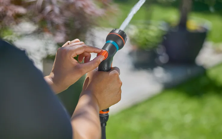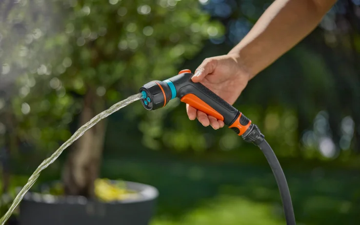 Kompaktní multifunkční sprchu lze použít k zavlažování květináčů a rostlin na balkonech. Kuželový proud pro citlivé rostliny, maximální proud pro čištění a plný pro květináče