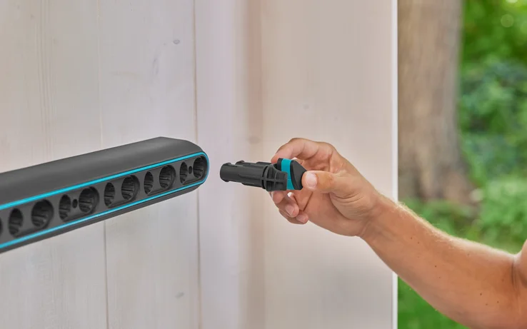 Věšák na nářadí má dva volně zasouvací držáky na nářadí, které lze otáčet v krocích po 30°, včetně malých háčků na zahradní nůžky a další drobné zahradní nářadí. Součástí balení jsou navíc dva držáky na násady a univerzální hák na zahradní nářadí, jako jsou např. rýče. Držáky jsou kompatibilní s výrobky GARDENA combisystem a Original GARDENA System.